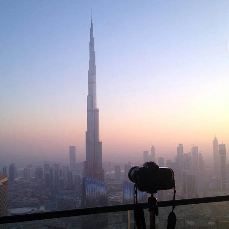 On the 60th floor of the Index building looking across at the Burj Khalifa in Dubai. Shooting cover shoots for Explorer Publishing.